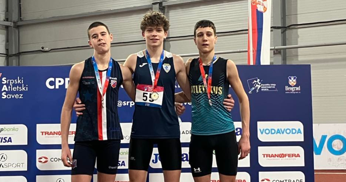 Član Atletskog kluba Dinamo iz Pančeva, Ognjen Stojanović osvojio je zlatnu medalju na Prvenstvu Srbije za pionire u višeboju održanom u subotu, 31. januara, u Beogradu.