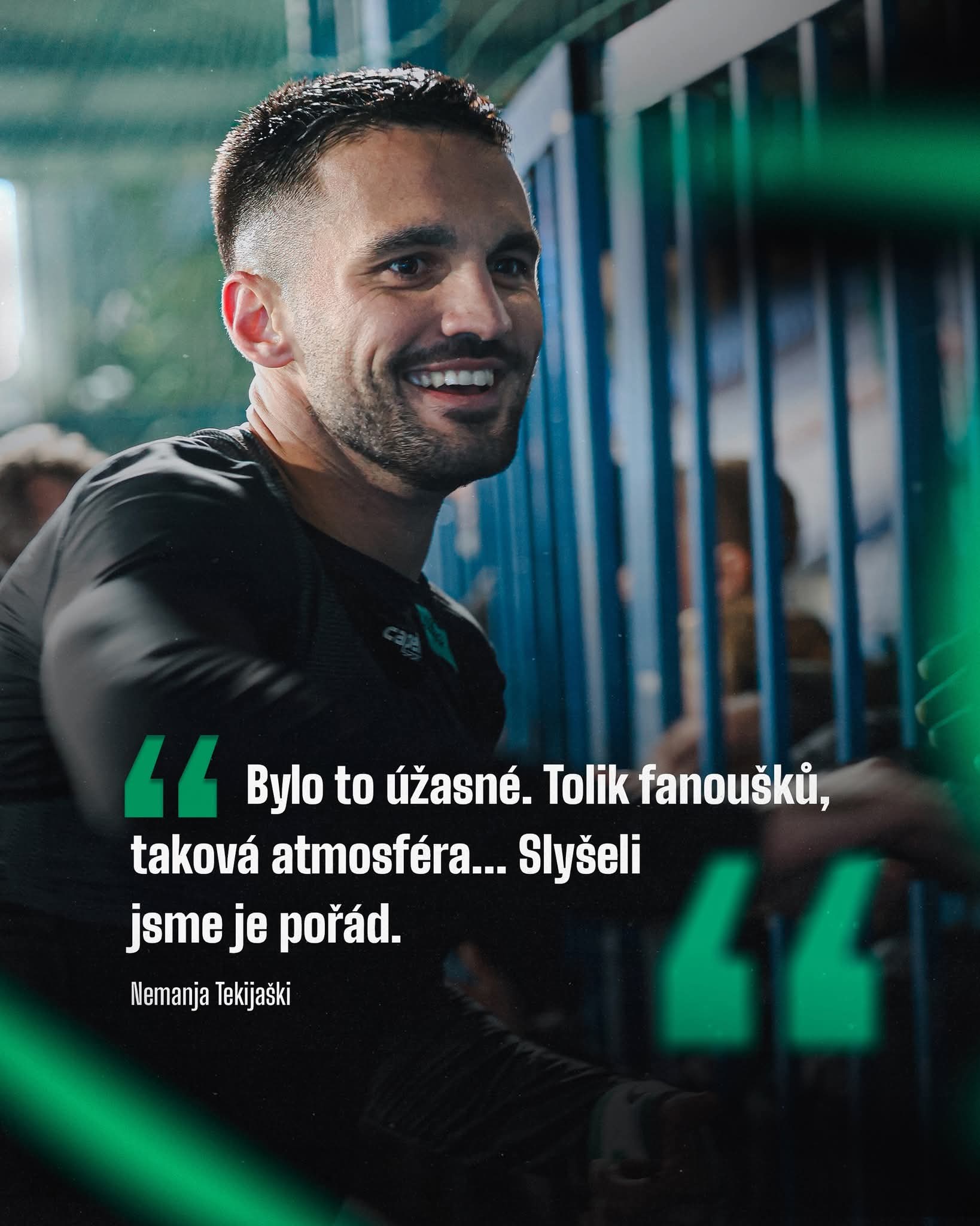 Prvenstvena utakmica Jablonec – Banjik Ostrava ostala je posebno upamćena. Bila je sredina drugog poluvremena, rezultat 1:1, Jablonec sa igračem manje, na tribinama vri. Banjik napada, šut sa ivice kaznenog prostora i – blok Nemanje Tekijaškog! Lopta odlazi u korner, a kapiten Jabloneca mirnim gestom raspoređuje saigrače. To su potezi koji dokazuju da kapitenska traka ne dolazi slučajno…