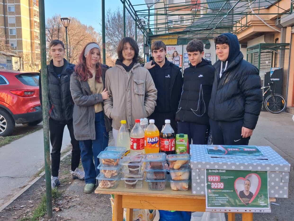Celo Pančevo prošle subote dirnula je akcija u kojoj su se deca i mladi iz Pančeva, uzrasta 13 do 17 godina, udružili kako bi prodajom različitih proizvoda na štandu u naselju Strelište sakupili novac za lečenje majke svod druga Stefana – Maje Veličković.