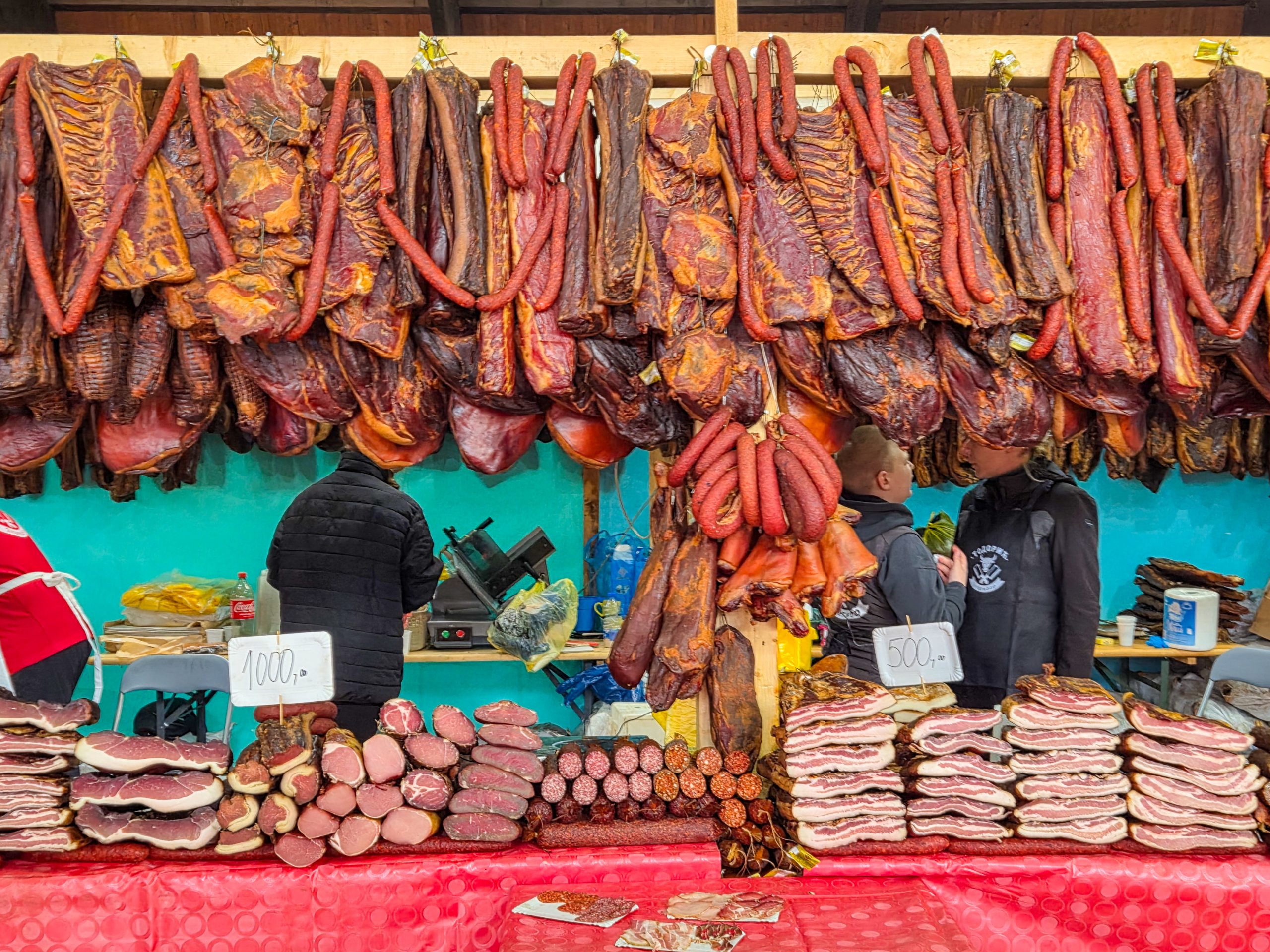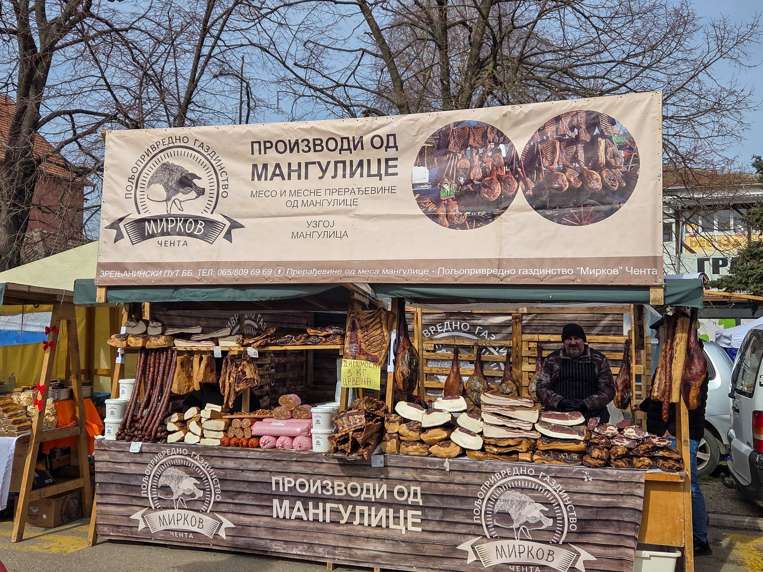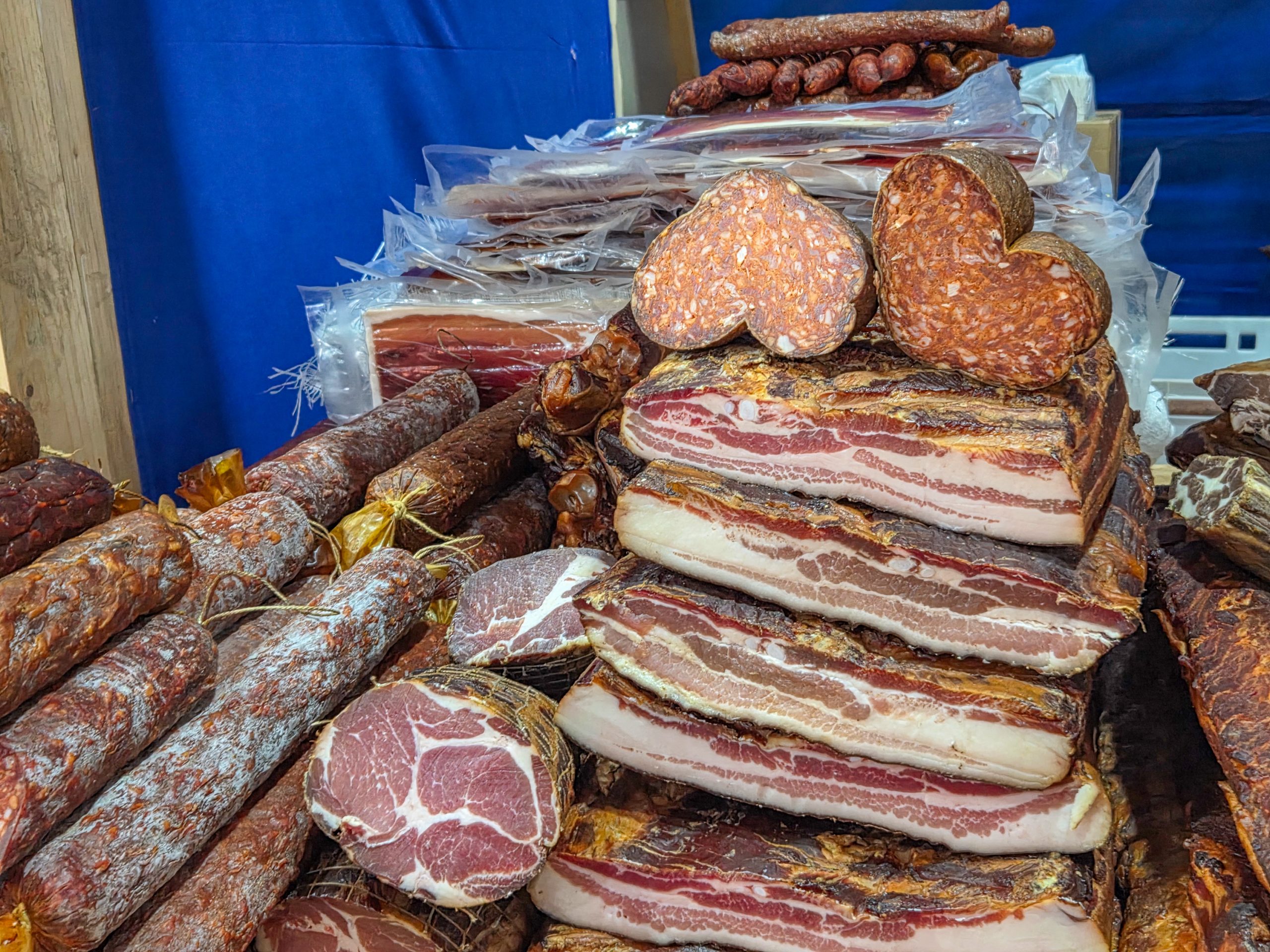 Na štandovima se nude domaća slanina, suvo meso, kobasice, čvarci, ali i razne prerađevine, a može se pronaći čak i čokolada sa čvarcima. Pored mesnih proizvoda, mogu se kupiti i liciderska srca, kolači, magneti i drugi tradicionalni vašarski suveniri.