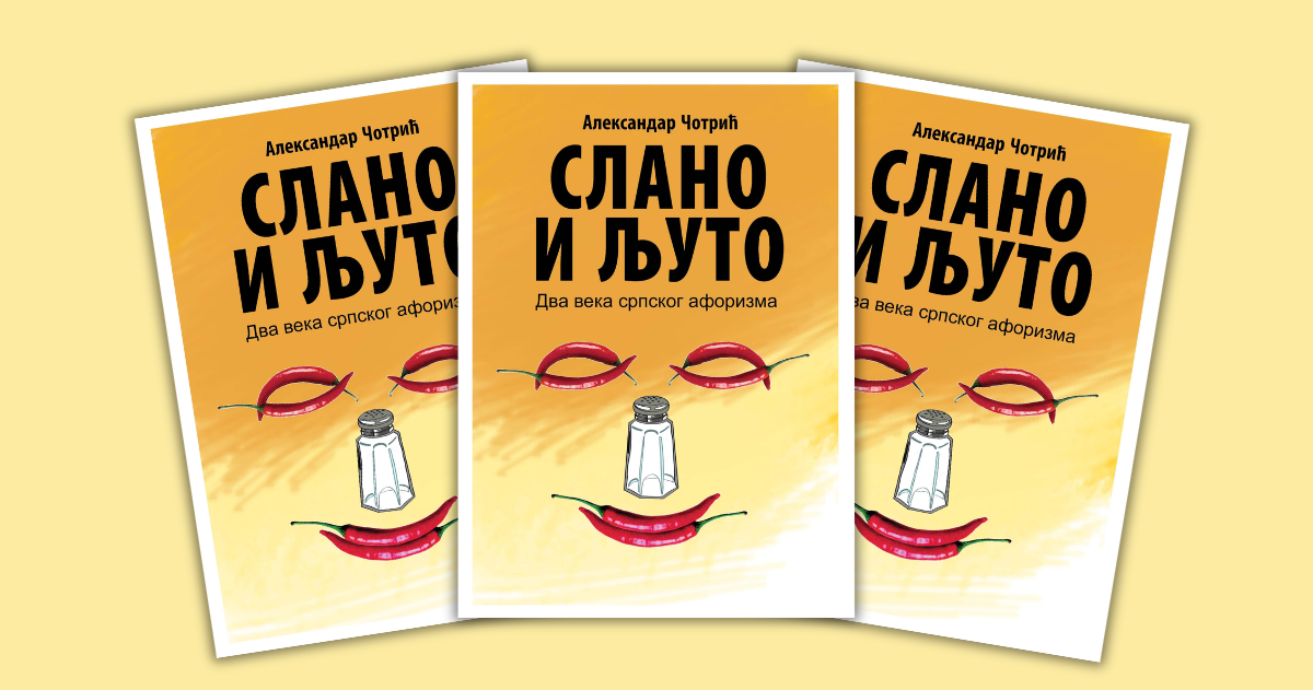„Slano i ljuto” naziv je upravo objavljene antologije kojom su obuhvaćena dva veka srpskog aforizma, od prvog srpskog aforističara Mihaila Maksimovića, rođenog 1745, do najmlađeg Jovana Zafirovića, rođenog 1997. godine. Priređivač dela je književnik iz Pančeva Aleksandar Čotrić, a izdavač je „Alma“ iz Beograda.